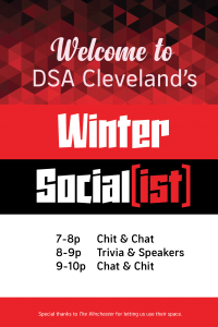 Come hang out on Thursday, January 18 at 7 PM – 10 PM at the Winchester Music Tavern for trivia, drinks, and discussion with the Cleveland DSA! The private room/area has been reserved for us. We’ll also have Cleveland DSA merch items for sale (suggested donation). The guest list is private so please feel free to RSVP!
